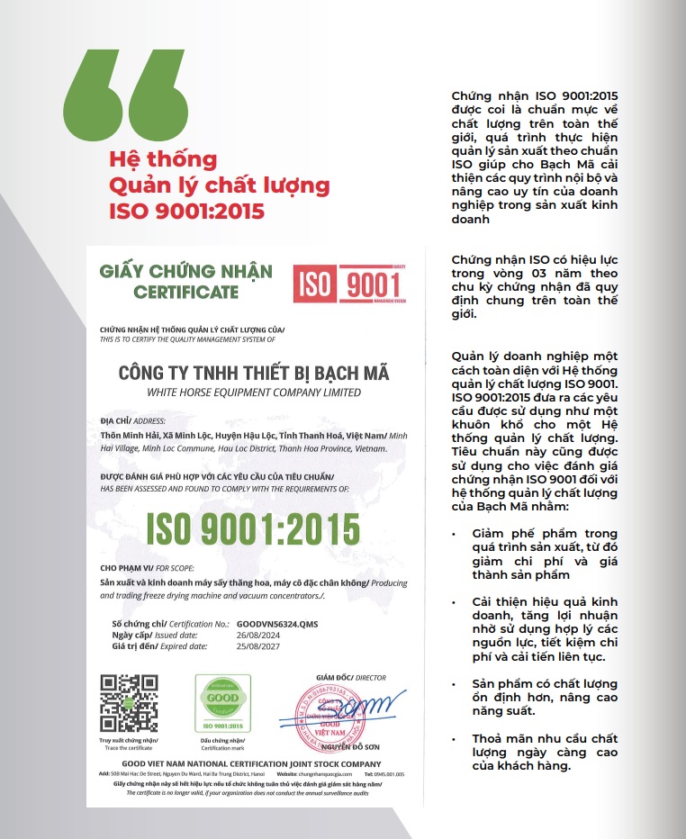 Đơn vị tiên phong cung cấp máy sấy thăng hoa công nghiệp, hệ thống chiết suất và cô đặc chân không chất lượng cao tại Việt Nam. Máy sấy thăng hoa công nghiệp Bạch Mã với dải công suất rộng từ 10-2000kg, đáp ứng mọi nhu cầu sản xuất. Góp phần nâng cao chất lượng nông sản Việt!